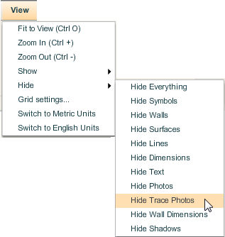 | 3. | This hides all the trace photos in the floor plan. Use the Show Trace Photos command to display the Trace Photos again. |