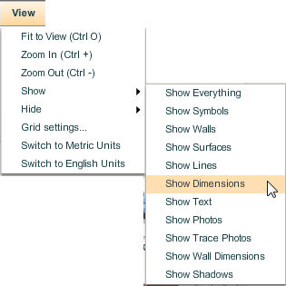 | 2. | Then select Show Dimensions from the Show sub-menu. |